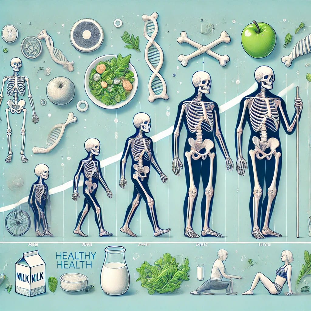 Doğumdan ergenliğe kadar iskelet sistemi, büyüme ve gelişme sürecinin merkezinde yer alır. Bu süreç, kemiklerin uzamasını ve güçlenmesini sağlayan büyüme plakalarıyla başlar. Çocukluk döneminde kemiklerin yoğunluğu ve dayanıklılığı hızla artar. Özellikle kalsiyum ve D vitamini gibi besinlerin yeterli alınması, bu büyüme sürecinin sağlıklı ilerlemesinde kritik bir rol oynar.
