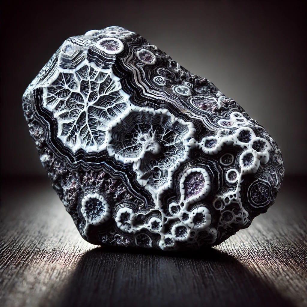 Merlinit, nadir bulunan ve mistik özelliklere sahip bir taş olarak bilinir. Adını ünlü büyücü Merlin’den almış olan bu taş, genellikle siyah ve beyaz tonlarının karışımıyla, bazen mor, gri ve mavimsi renklerde de bulunabilir. Merlinit, doğasında hem kristal hem de organik mineralleri bir arada barındırır. Hem estetik açıdan hem de metafiziksel anlamda güçlü bir taş olarak kabul edilir. Şifa ve koruma sağlamak için kullanılan bir taş olarak, spiritüel çalışmalar için oldukça popülerdir.