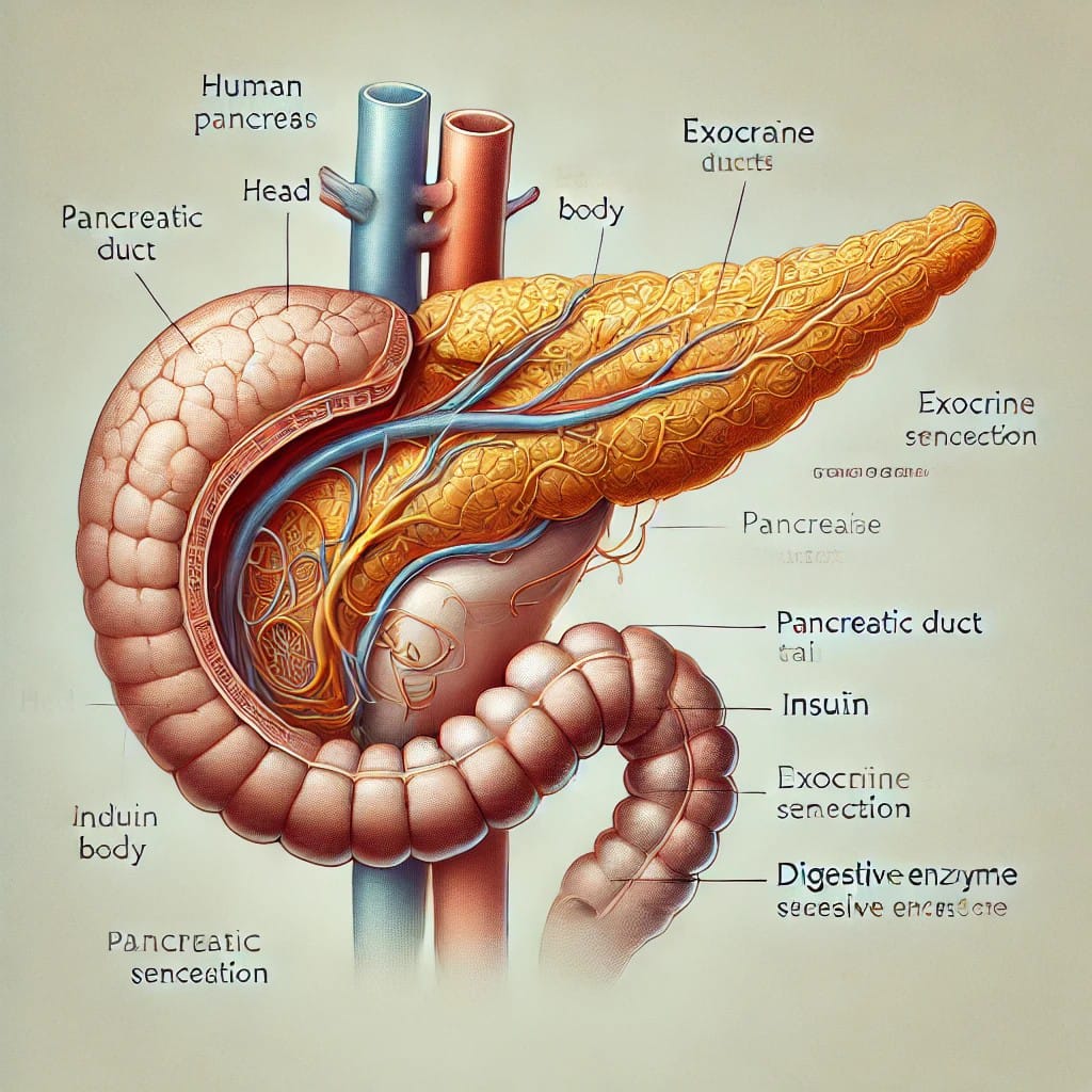 Pankreas, besinlerin sindirilmesinde yardımcı olan enzimleri üretir. Bu enzimler, ince bağırsağa gönderilir ve burada proteinlerin, karbonhidratların ve yağların sindirilmesine yardımcı olur. Bu enzimler arasında amilaz, lipaz ve tripsin bulunmaktadır. - İnsülin Üretimi (Endokrin Fonksiyon)